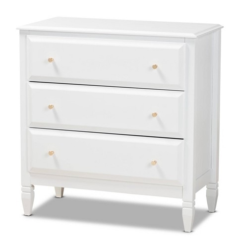 3 Drawer Naomi Wood Bedroom Chest White Gold Baxton Studio Target